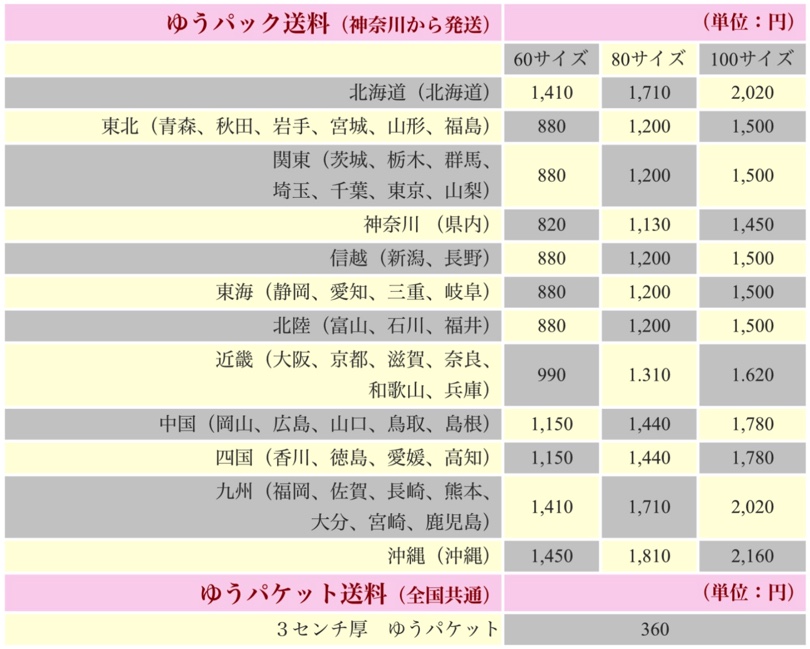 ゆうパック送料、ゆうパケット等の送料をご負担下さい。
